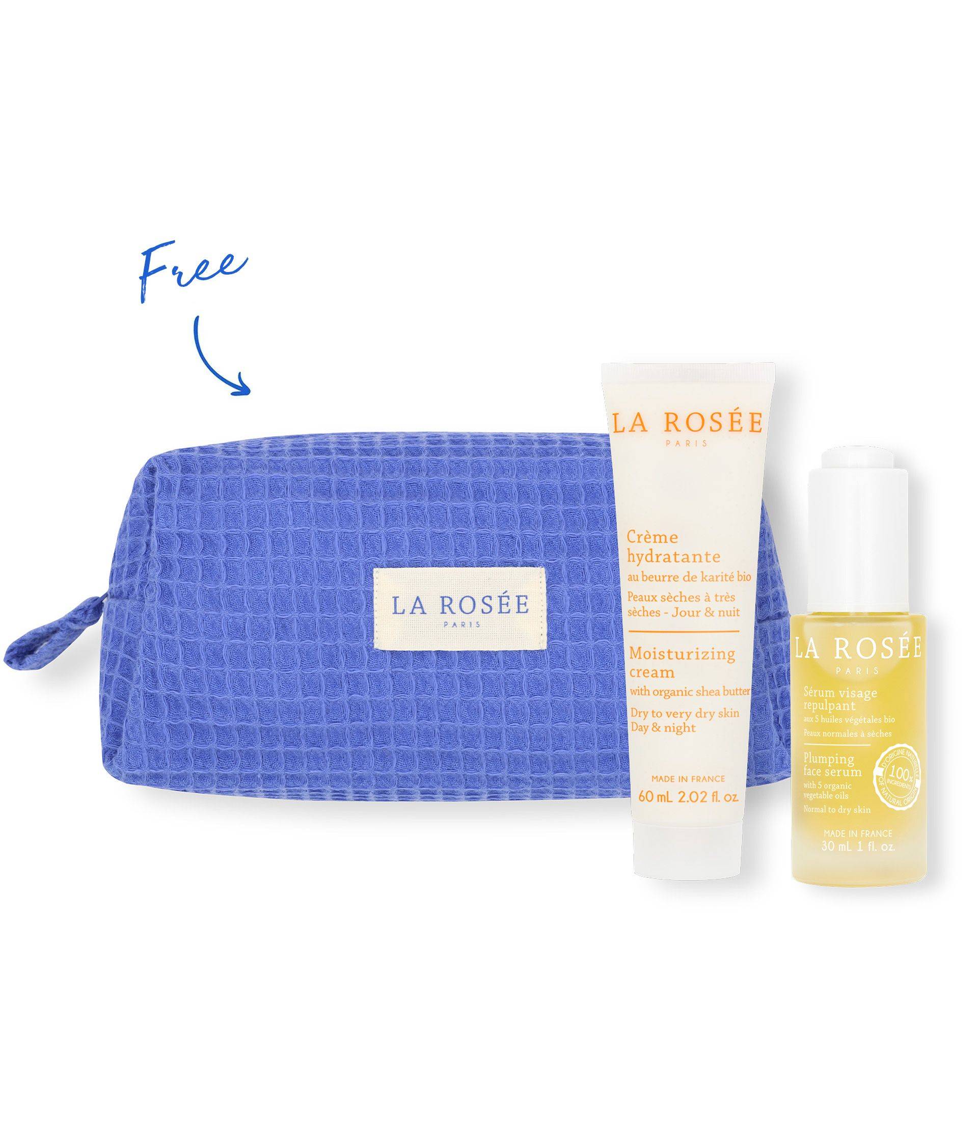 The Plumping Serum and Moisturizing Cream with organic shea butter come together in a lovely organic cotton pouch to help restore moisture and smooth the appearance of fine lines.